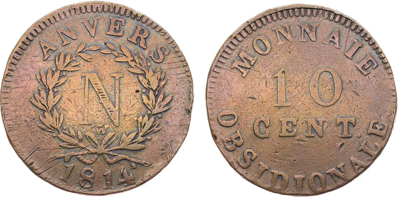 Бронза. 24,96г. Военно-морской арсенал Антверпена. Аверс: вензель Наполеона с инициалом "W" под ним. Тираж: 28.500 экз. KM 5.4. VF-.