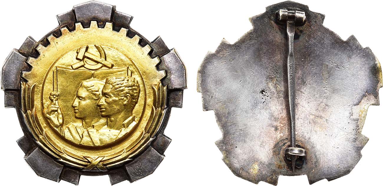 Белый металл, золочение. 24,25г. Размер 44х44 мм. С заколкой на оборотной стороне. UNC.