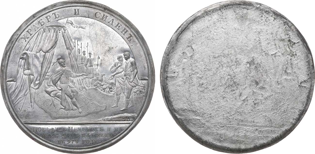 Свинцово-оловянный сплав. 20,72г. Диаметр 79 мм. Санкт-Петербургский монетный двор. Из исторической серии медалей, №90. Односторонний оттиск реверса. Медальер реверса — С. Юдин (под обрезом по центру: "•С•ЮДИН•", справа на обрезом "90"). Смирнов 152. Дьяков 1757(R1). AU/UNC.