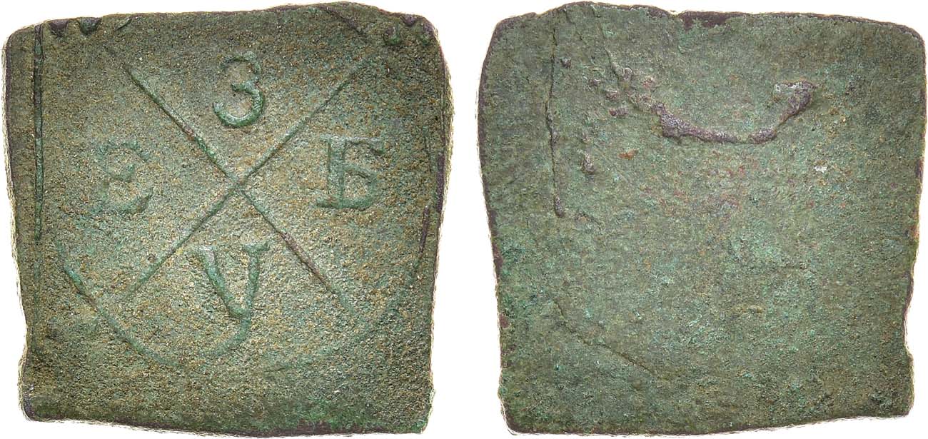 Медь. 4,55г. Размеры: 22х21 мм. Екатеринбургский монетный двор. Объём чеканки: 10500 экз. Григорьев, Черноухов 0363(∸). XF.