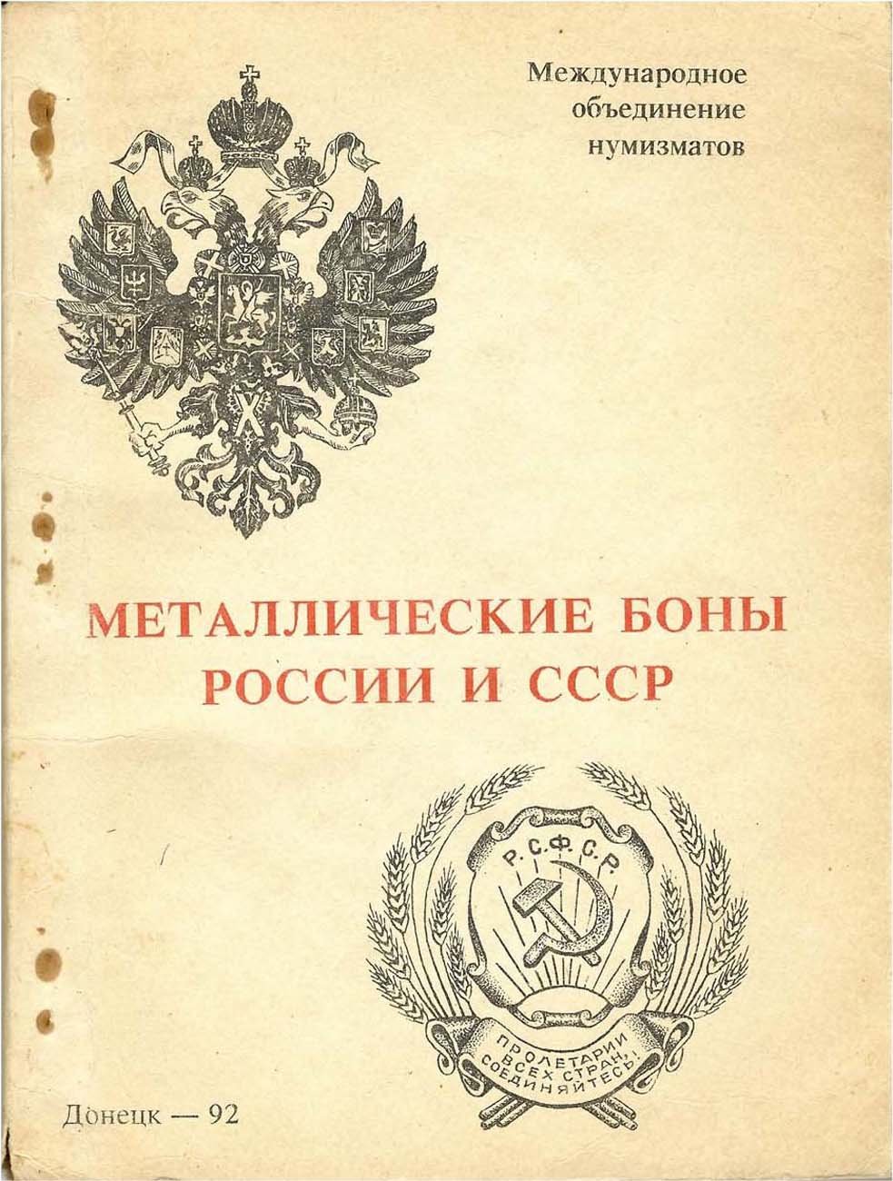 Донецк 1992 г., 118 стр. Посмертное издание рукописи известного бониста А.В. Тункеля (1907-1976), написанной им еще в 1974 г. Содержит описание более 1500 металлических суррогатов денежных знаков Российской империи и СССР, до настоящего времени является наиболее полным изданием такого рода. Сегодня это единственный каталог металлических бон, на который ссылаются основные аукционные дома России. Интересный, редкий и единственный в своем роде каталог металлических бон и жетонов, выпускавшихся в дореволюционной России и в советский период.
