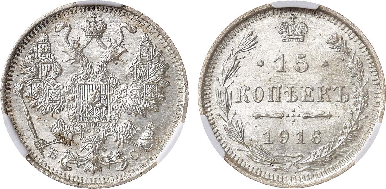 Серебро. Петроградский монетный двор. Уздеников 2220. Биткин 143. Казаков 496. MS 65.