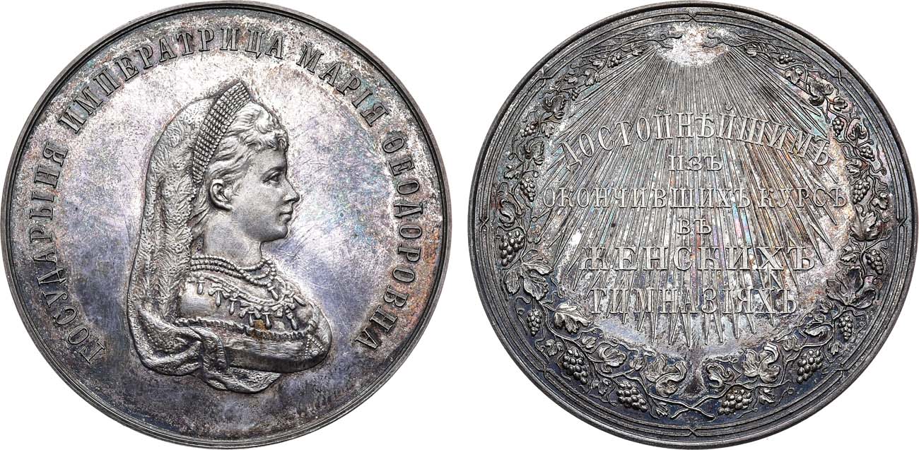 Серебро. 47,2г. Диаметр 45 мм. Санкт-Петербургский монетный двор, начало XX в. Аверс: медальер – А. Грилихес (на обрезе изображения императрицы "А.Г."). 1903 г. Смирнов 1266. Дьяков 909.1А(R3). UNC.