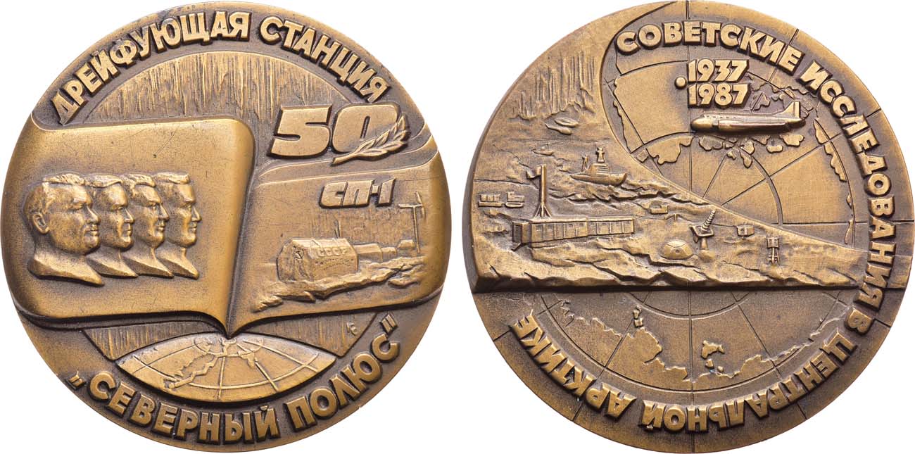 Медаль выпущена к 50- летию дрейфующей станции "Северный полюс".