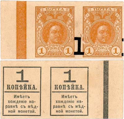 Малая темная круглая печать с императорским орлом Семипалатинского отделения Государственного банка на реверсе. Введен в обращение в 1918 году. Кардаков IX.19.1b (10 дойчмарок), Рябченко №20703. XF+.