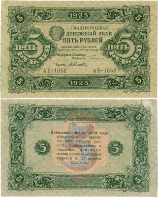РСФСР. Государственный Денежный знак. 5 рублей 1923 года.