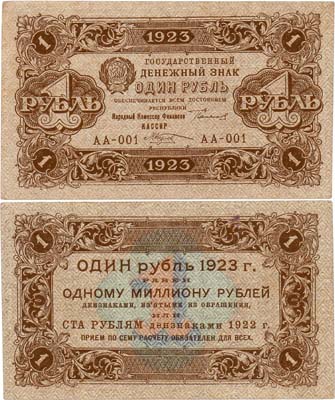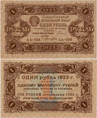 РСФСР. Государственный Денежный знак. 1 рубль 1923 года.