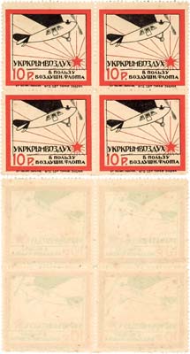 Блок из 4 непочтовых (рекламно-благотворительных) марок 1923 года. УКРКРЫМВОЗДУХ. 10 рублей в пользу воздушного флота.