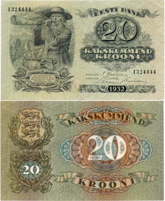Эстония. Республика. Банк Эстонии. 20 крон 1932 года.