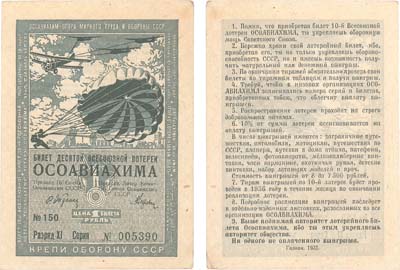 СССР. Лотерейный билет. 50 копеек 1931 года. Шестой выпуск Всесоюзной лотереи Осоавиахима.