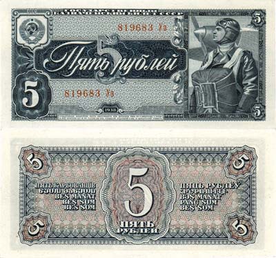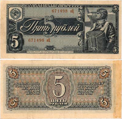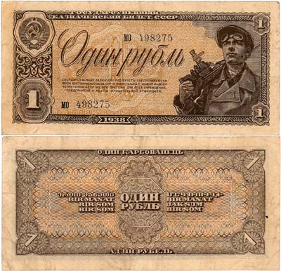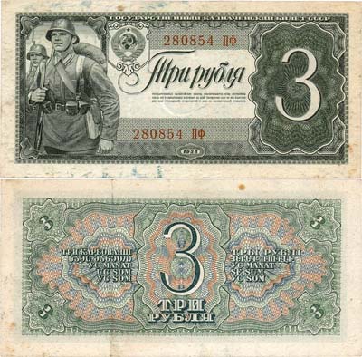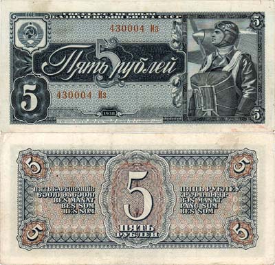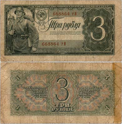 Серия ТК №0809849. Нарком Н.П. Брюханов. Кассир А. Серов. Нумерация третьего типа (две большие литеры). Pick 206. Кардаков 201.4b. ZG2№2.22.4. VF.