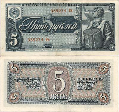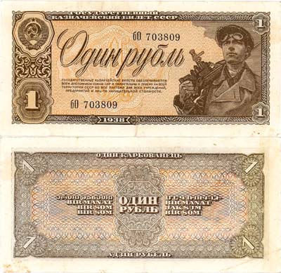 Серия 27 №0732295. Нарком Финансов: Г.Я. Сокольников, кассир: Герасимов. Народное название знака - трактор. ZG2 №2.19.6. AU-.