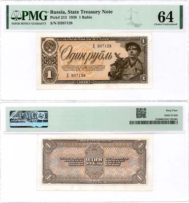 СССР. Государственный Казначейский билет. 1 рубль золотом 1924 года. В слабе PMG 50 About Uncirculated.