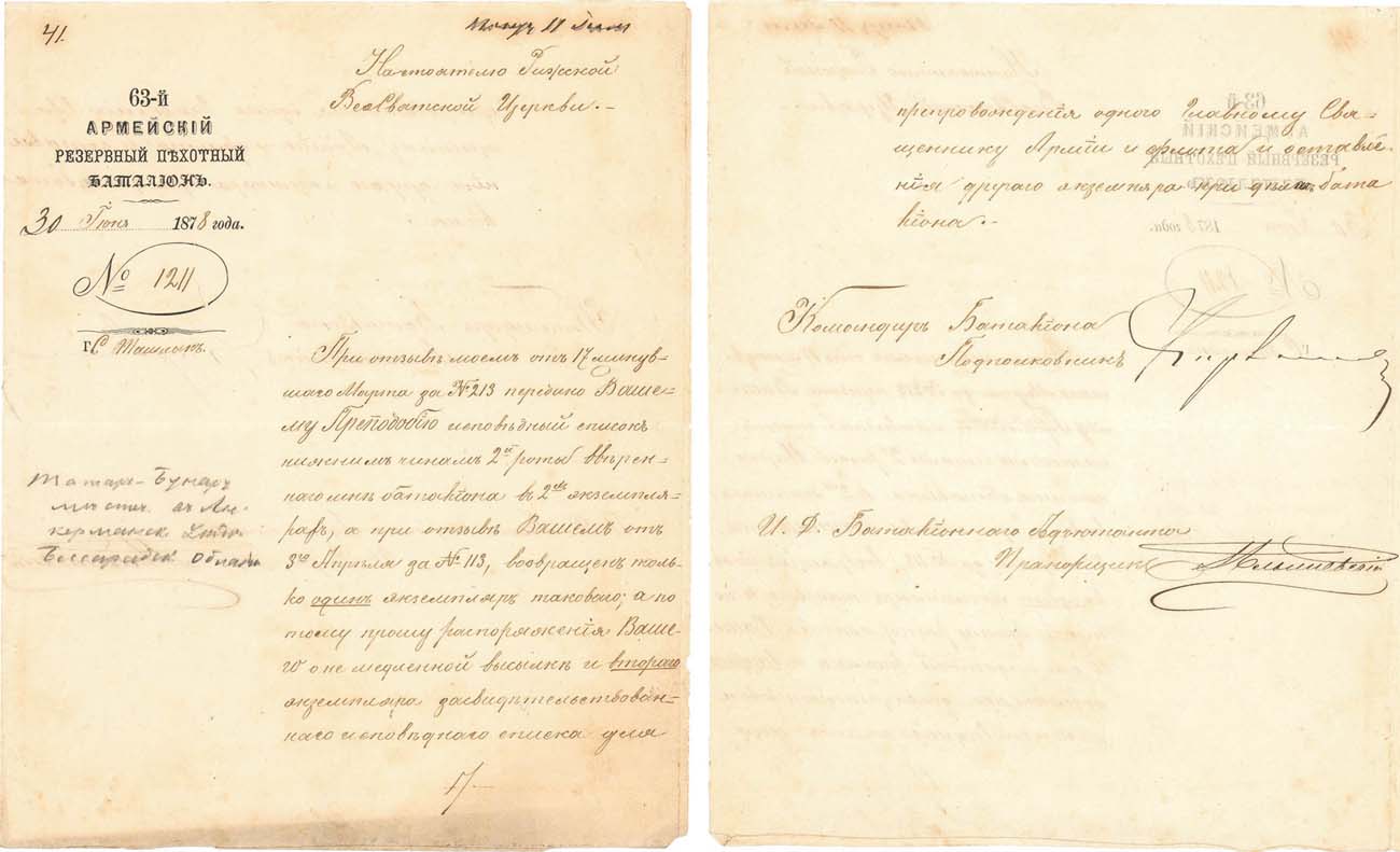 Орешковые чернила, подписи. №1211. Интересный исторический документ на бланке, с датировкой. XF.