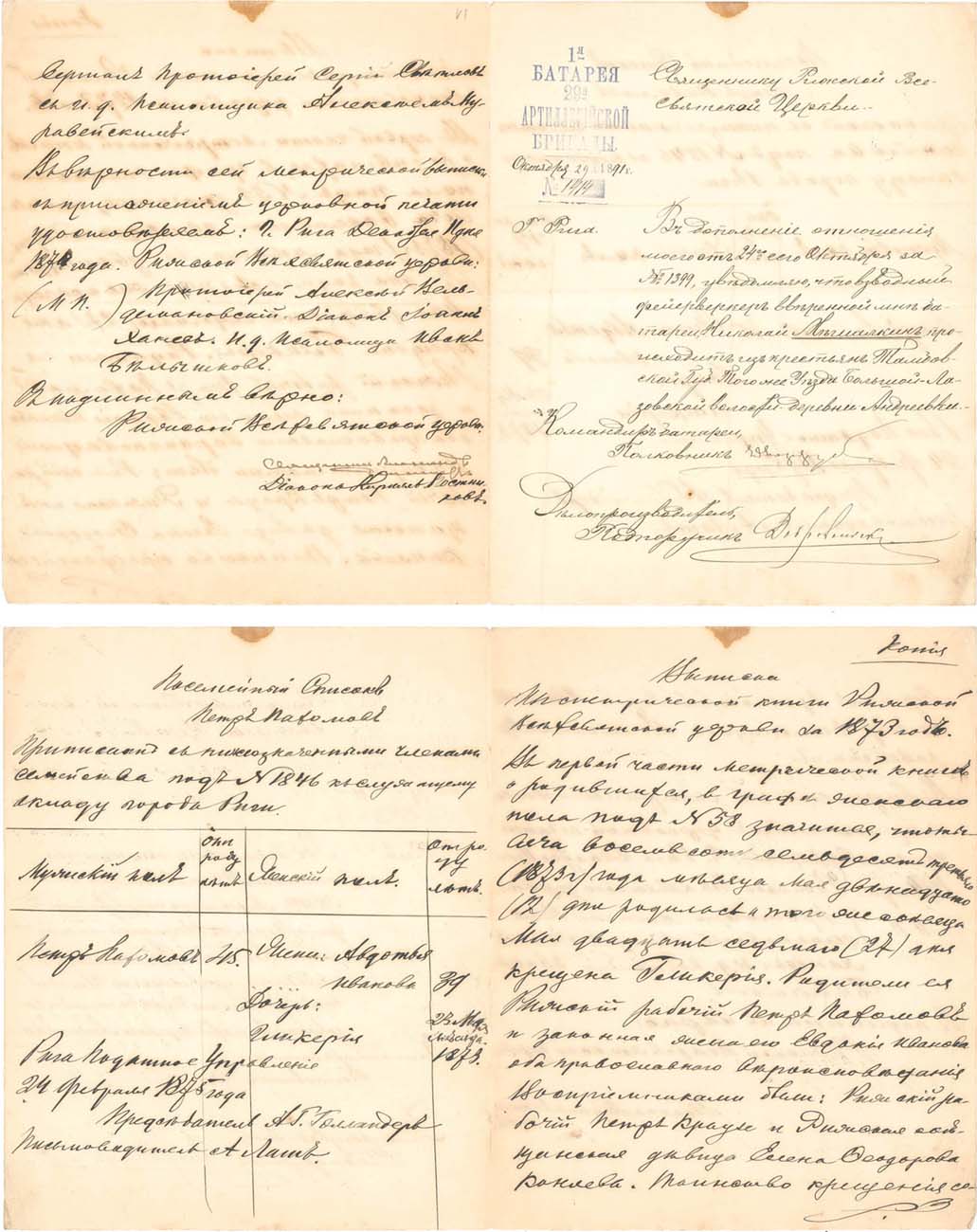 Город Рига. На обороте с следующей странице ответ священника Рижской Всесвятской церкви. Чернила, подписи. №1414. XF.