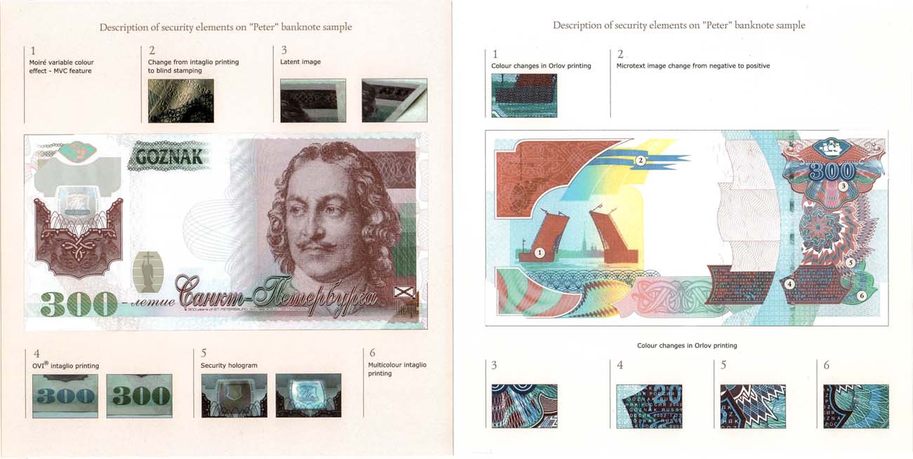 Вариант 2 - портрет Петра I. Серия АА №1234567. Водяной знак - "портрет". UNC (пресс).