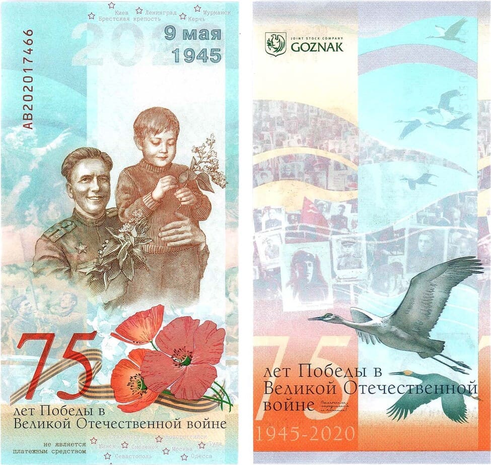 Серия АВ №202017466. Водяной знак "орден". UNC (пресс).