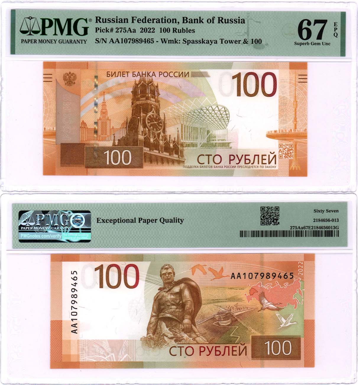 Серия АА №107989465. 67 EPQ Superb Gen Unc.