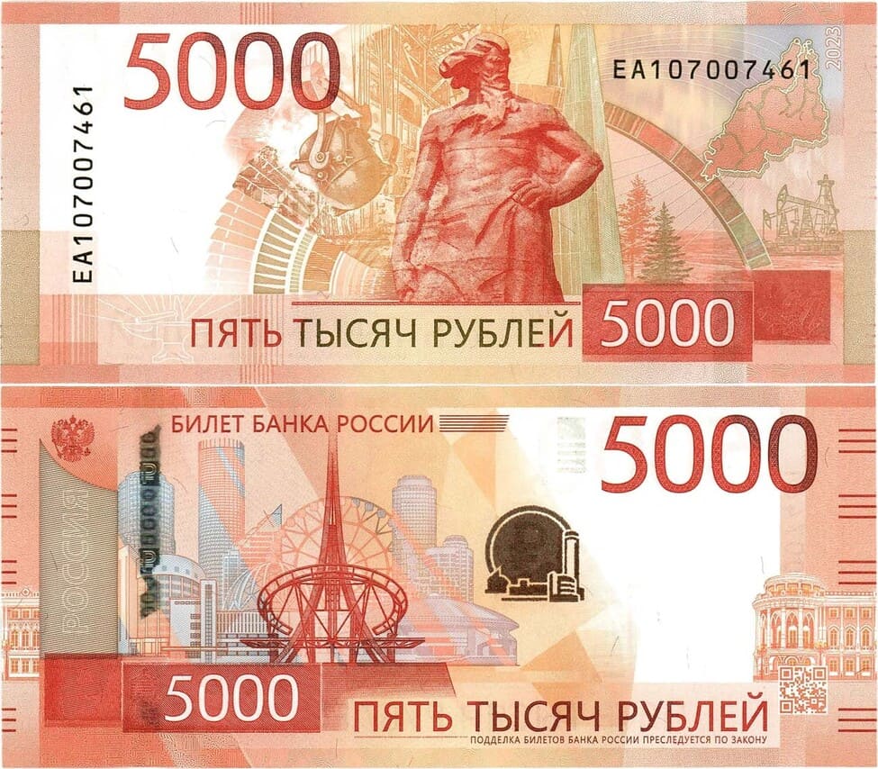 Серия ЕА 107007461. Основное изображение лицевой стороны банкноты — стела «Европа — Азия». Основное изображение оборотной стороны банкноты — памятник «Сказ об Урале» в Челябинске. Банкнота изготовлена на хлопковой бумаге белого цвета. UNC.