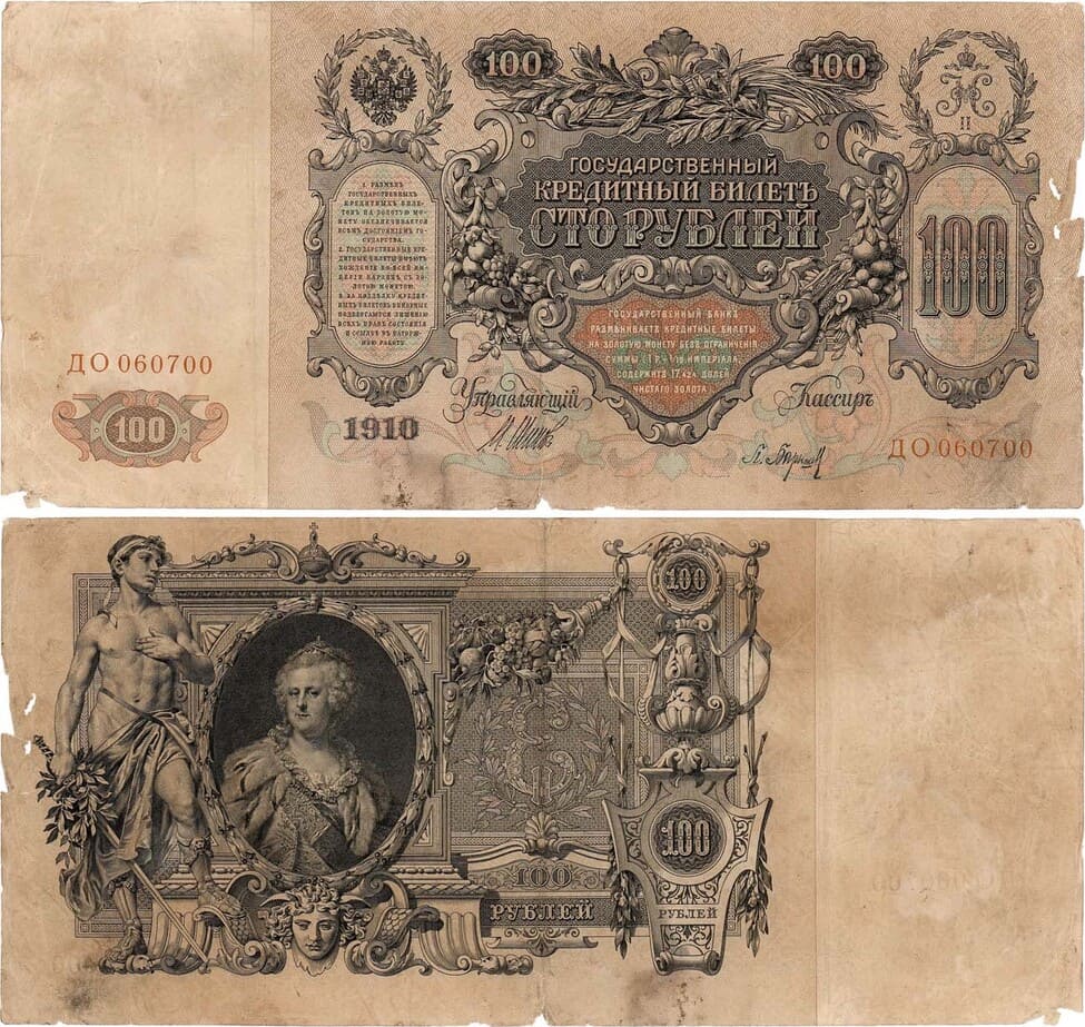 Серия ДО 060700. Выпуск Императорского правительства. Управляющий Шипов, кассир Барышев.ZG2№1.17.25. F/VF.