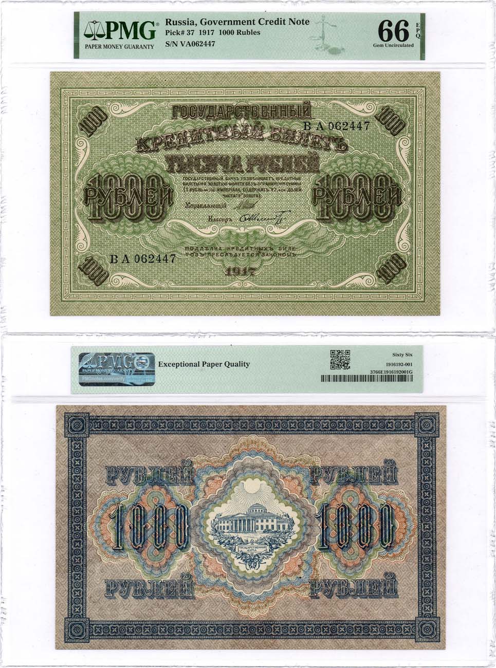 Топ Грейд. По данным PMG известно всего 20 банкнот с грейдом 66 EPQ Gem Uncirculated.