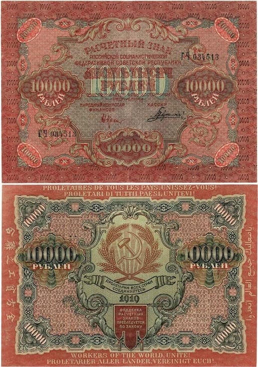 Серия ГЧ №034513. Водяной знак: волны узкие. Народный Комиссар Финансов: Н.Н. Крестинский, кассир Гаврилов. ZG2№2.5.14. Pick 106b. Кардаков 129.1b. UNC-.