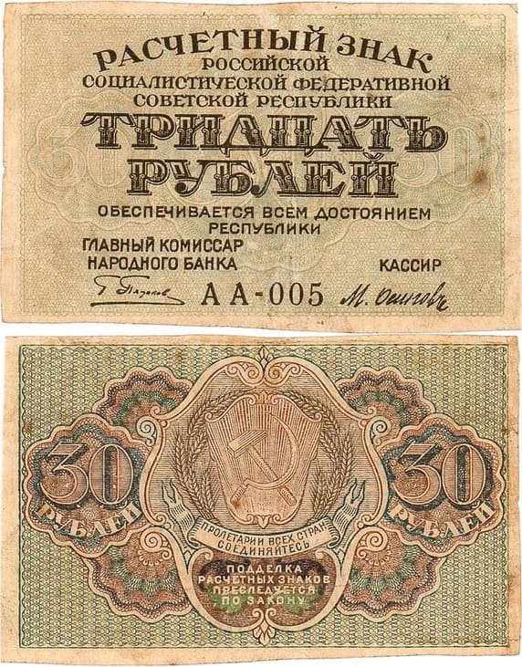 Серия АА-005. Главный Комиссар Народного банка: Пятаков. Кассир: М. Осипов. ZG2№2.3.3. XF-.