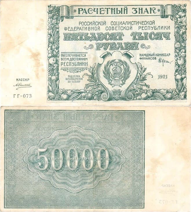 Серия ГГ-073. Подписи: Нарком Финансов - Н.Н. Крестинский, кассир - Силаев. В/з большие теневые звезды (№2). ZG2№2.6.28. AU.