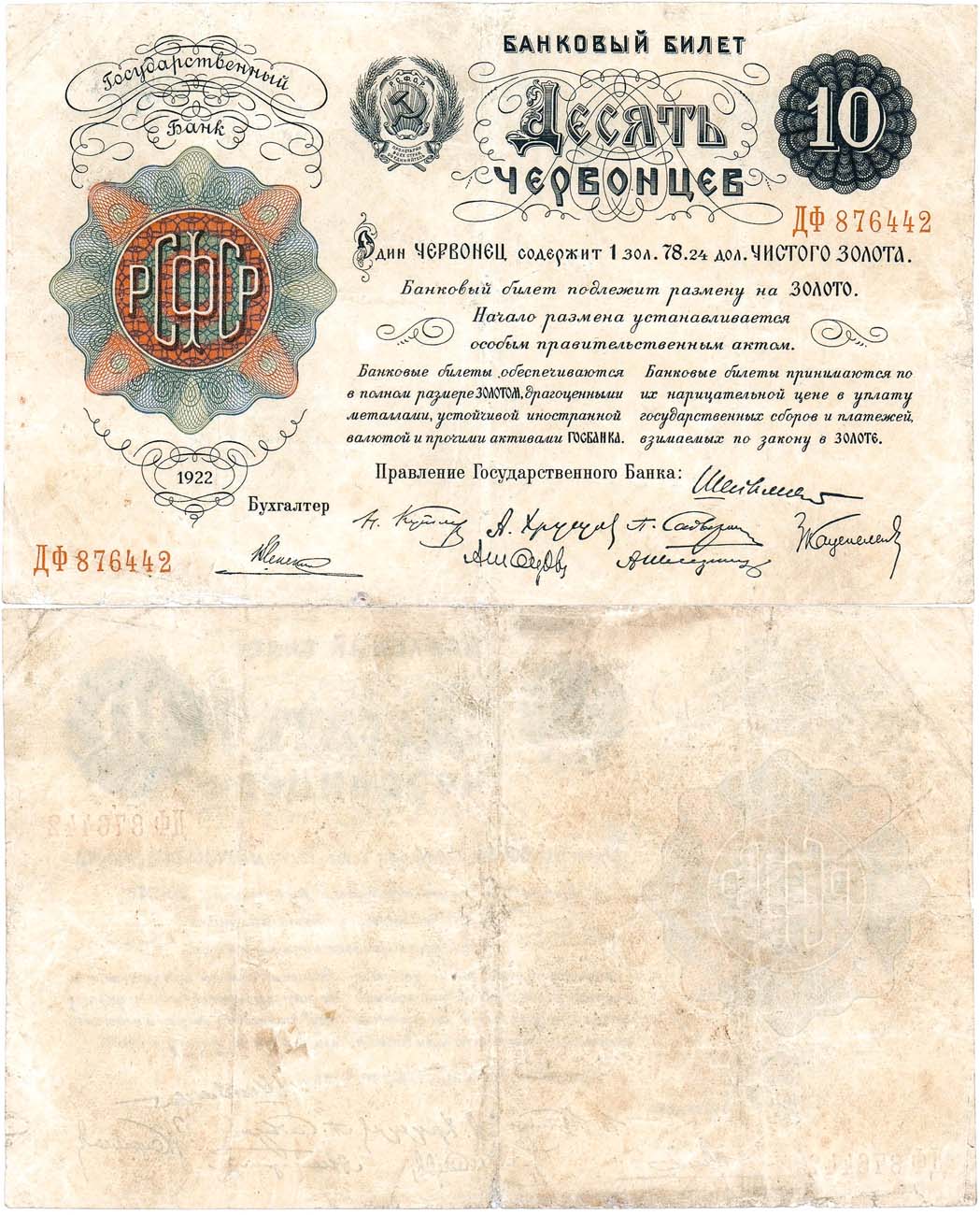 Серия ДФ 876442. С восемью подписями членов Правления Государственного Банка РСФСР. Кардаков I.4.265 (8 д). Денисов Б-4. Рябченко 1283. ZG2№2.13.5. VF+.
