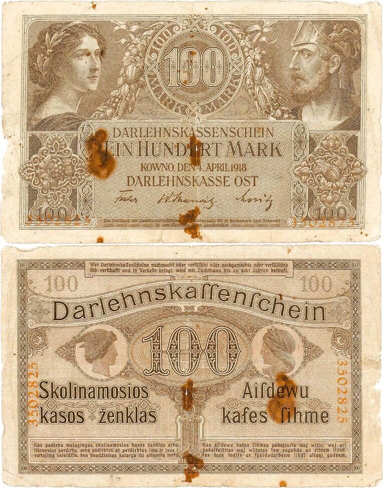 Ковно (Каунас). Номер 3502825. Выпуск 4 апреля 1918 года. Pick R133. F/VF-.