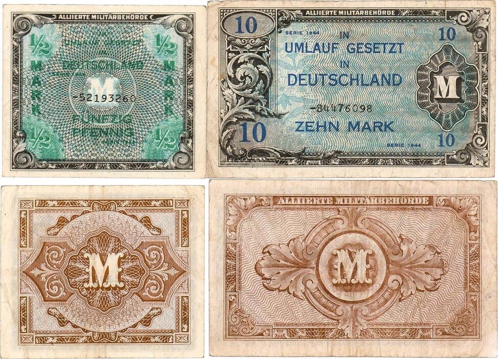 Сборный лот из 2 оккупационных банкнот Германии 1944 года.