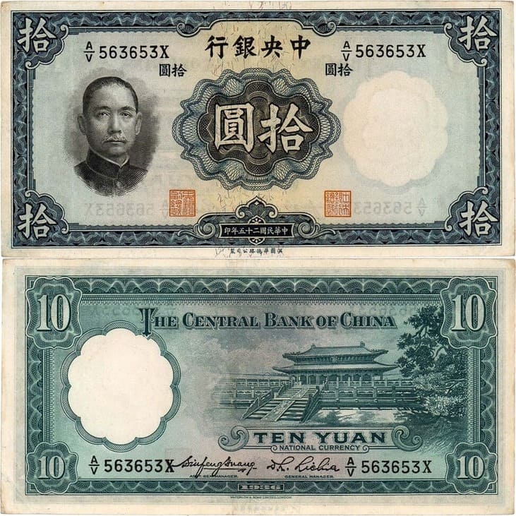 Типография Waterlow, Лондон. Серия A/V 563653 X. Сунь Ятсен. Дворцовый музей в Пекине. Pick 218a. XF.