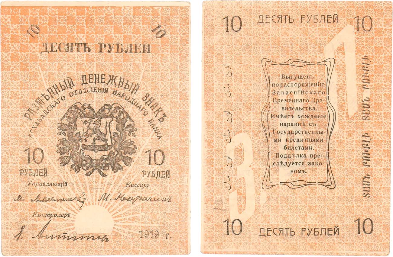 Подписи: управляющий М. Мельников, кассир М. Неудачин, контролер Я. Антипов. Бумага тонкая, без водяного знака. Фон розовый. Истомин 260.2.1. Кузнецов IV.2. AU.