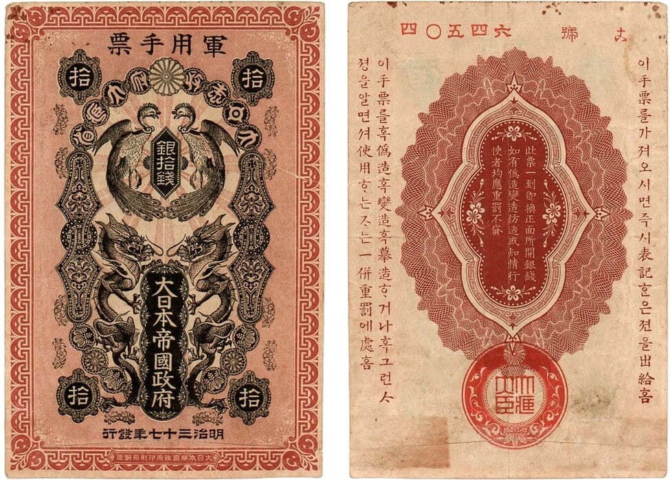 С номером и серией на оборотной стороне. На Японском и Корейском языках. Рябченко №10610. VF.