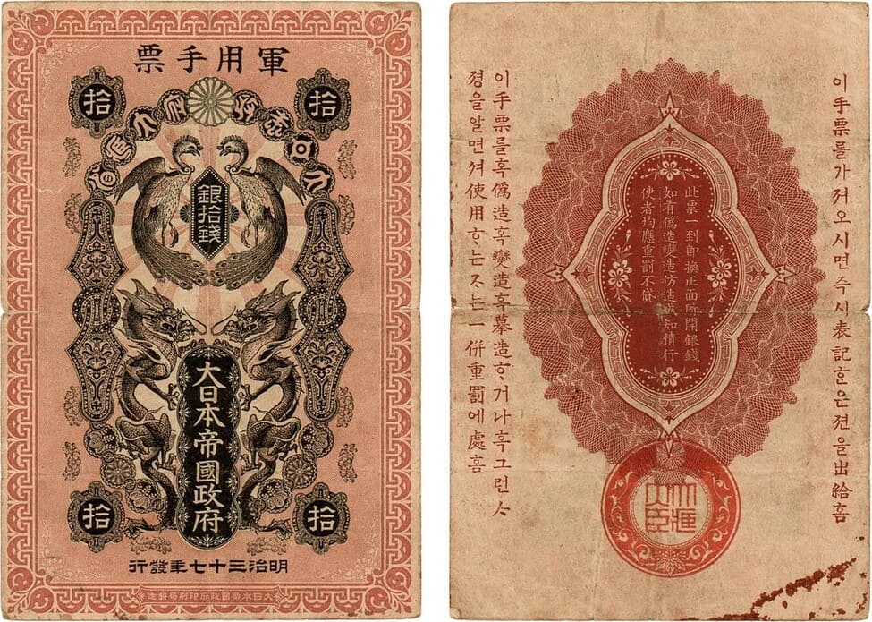 Без номера и серии на оборотной стороне. На Японском и Корейском языках. Рябченко №10610. VF-.