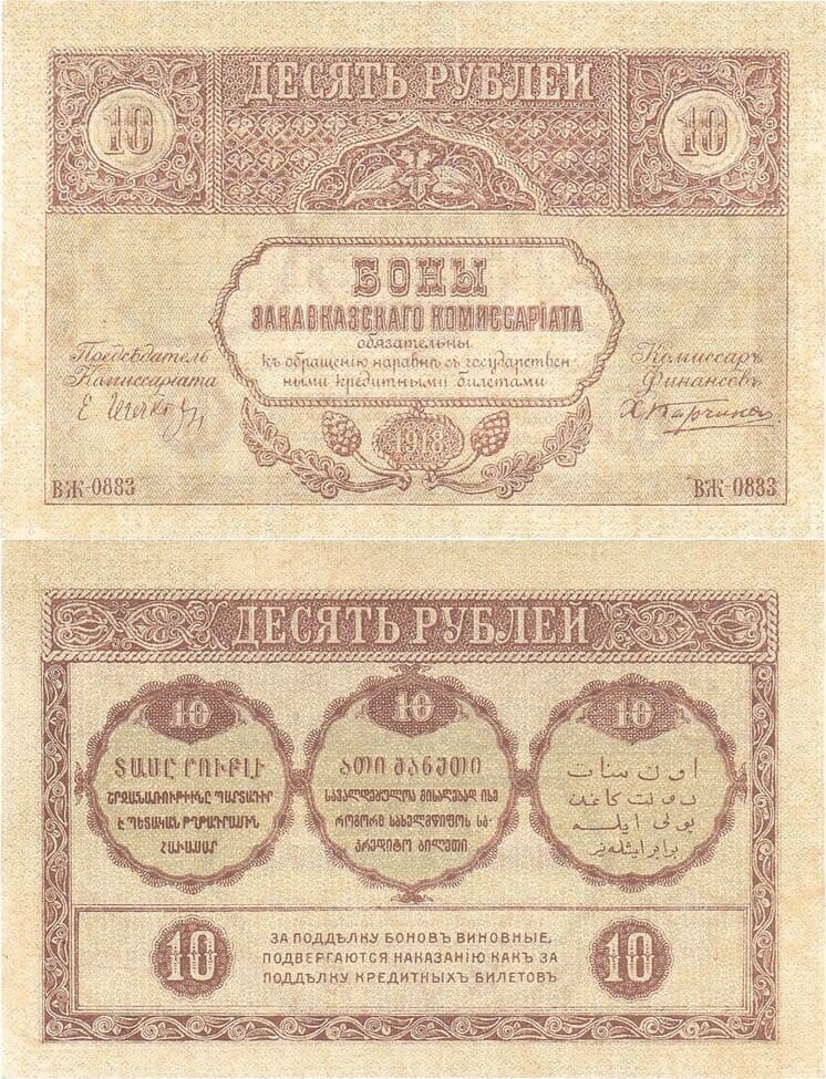 Серия ВЖ-0883. Фон светло-оливковый. Текст темно-красный. Жуков/Малышев №1.4.2. UNC.
