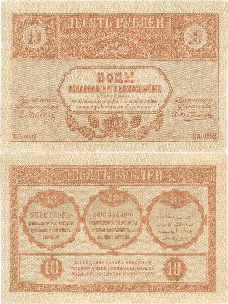 Серия ВЛ-0892. Фон светло-оливковый. Текст красный. Жуков/Малышев №1.4.2. UNC.