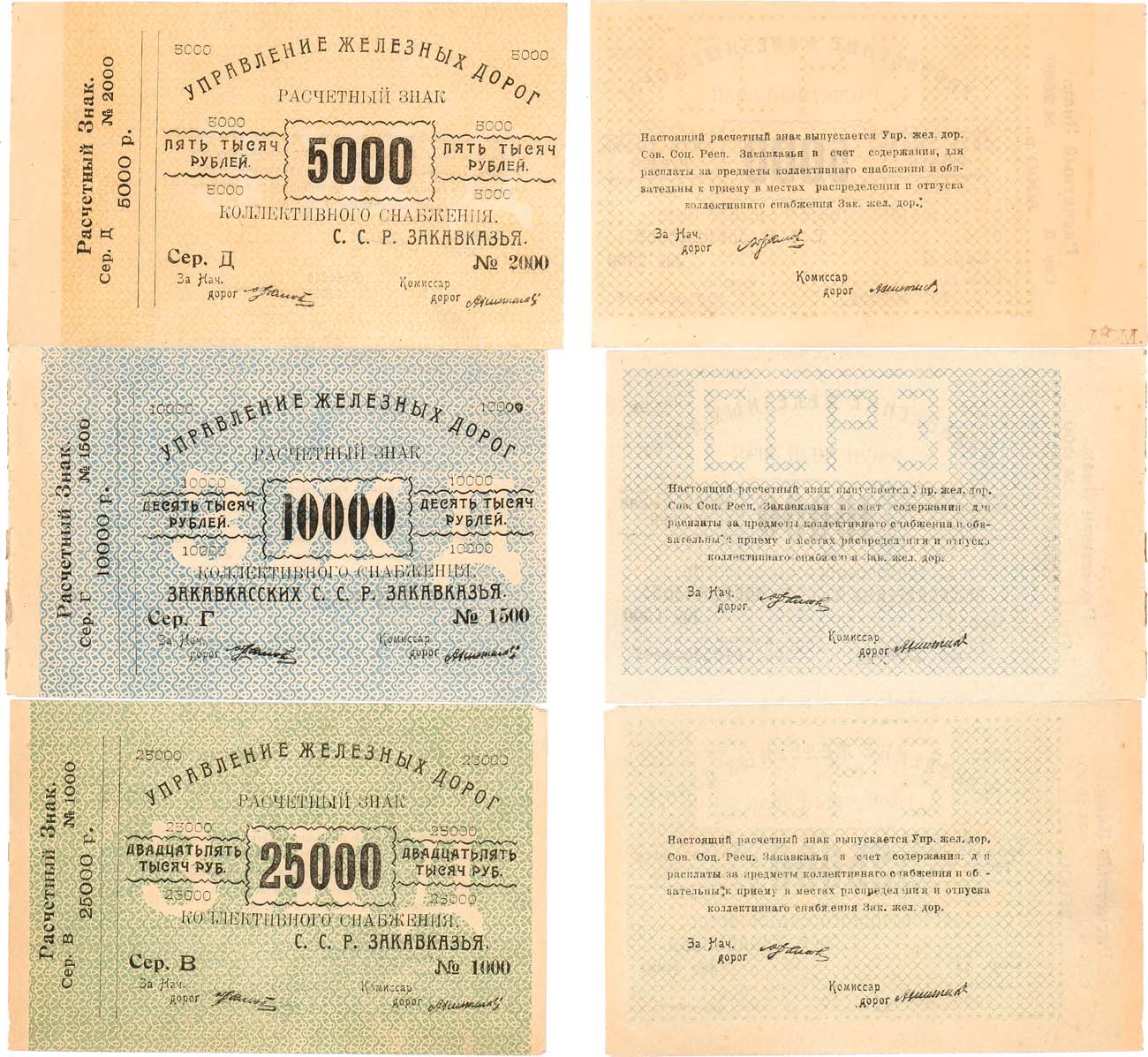 5000 рублей: серия Д №2000, 10 000 рублей: серия Г №1500, 25 000 рублей: серия В №1000. Без корешков. Рябченко №№20960-20962. aUNC.