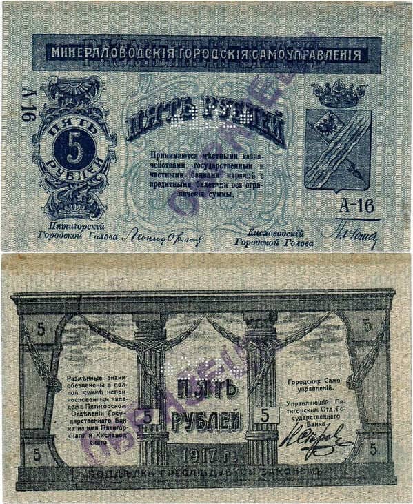 Серия А-16. Первый выпуск. Образец -тип 1. Надпечатка чернильным штампом: ОБРАЗЕЦ на лицевой стороне. Перфорация "122" в центре банкноты". Истомин Е235.4.1 S1. Рябченко 6485 (аналог). AU.