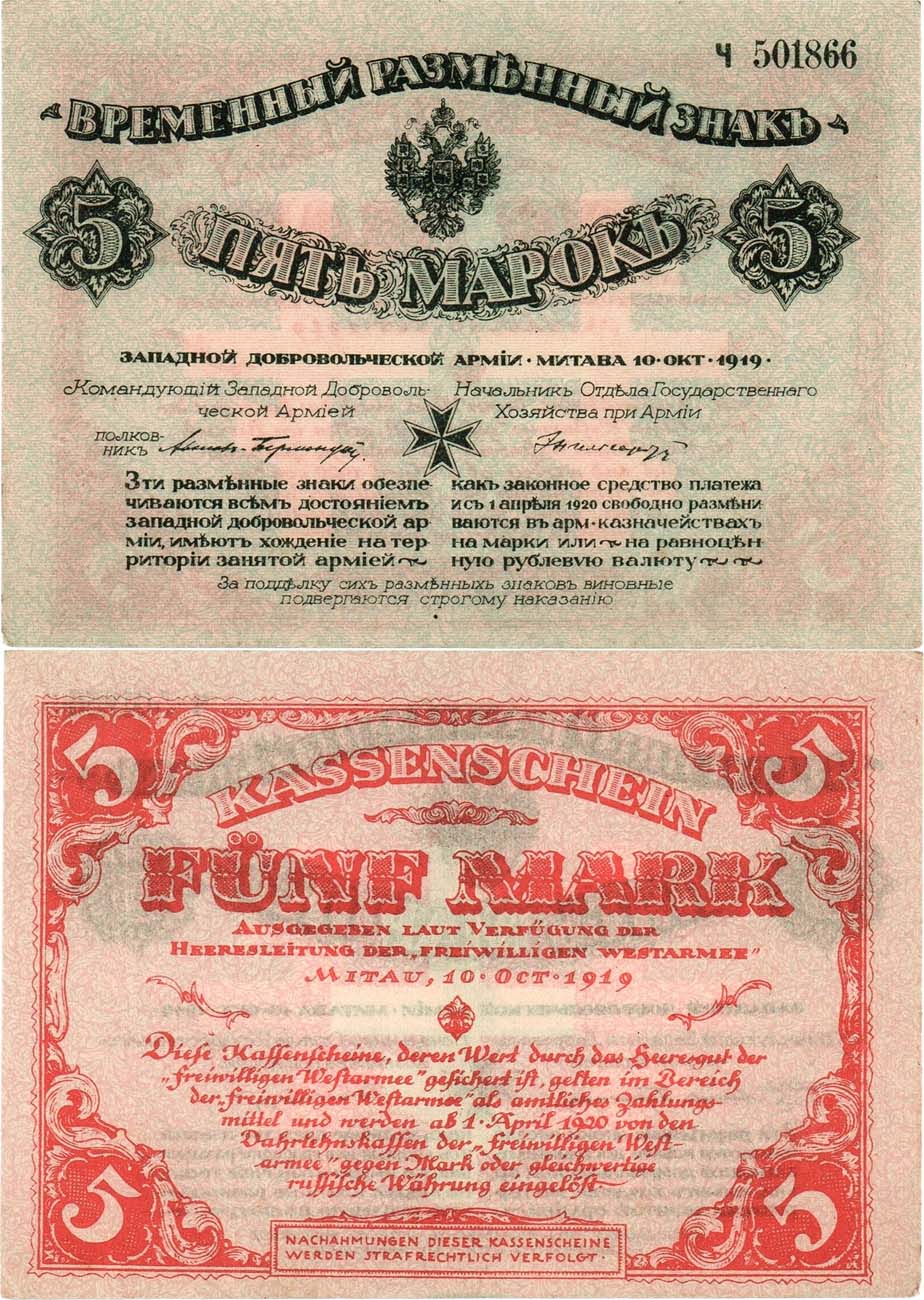 Полковник П.Р. Авалов-Бермондт. Серия Ч 501866. Кардаков IV.1.6 (1,25 дойчмарки). Выпуск с конгревом (выдавленный круглый штемпель). Ro MIL2a (LE-64/S227) AU.