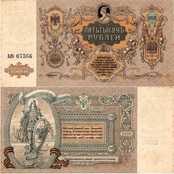 Серия АХ-07366. Водяной знак вензель ГБ. Лазарев 36. Истомин 170.13.1a. Экспедиция по изготовлению денежных знаков при Ростовской н/Д. Конторе Государственного Банка. XF-.