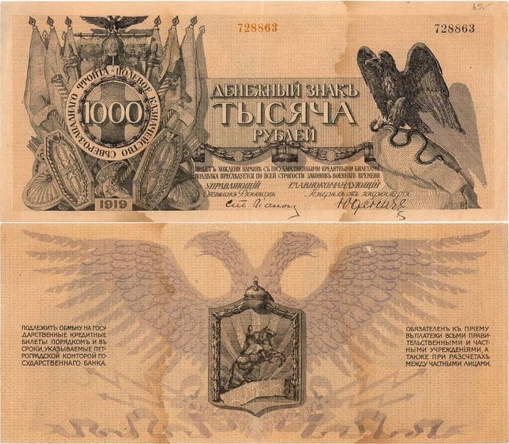 №728863. Главнокомандующий - генерал от инфантерии Н.Н. Юденич. Кардаков III.4.10 (2,50 дойчмарки), Рябченко №2076(30д). XF/AU.