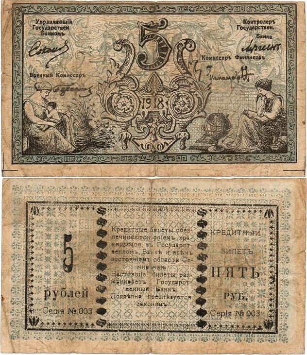 Правительство Семиреченского казачьего самоуправления. Ликвидировано большевиками в апреле 1920 года. Эмиссия Алма-Атинского государственного банка.