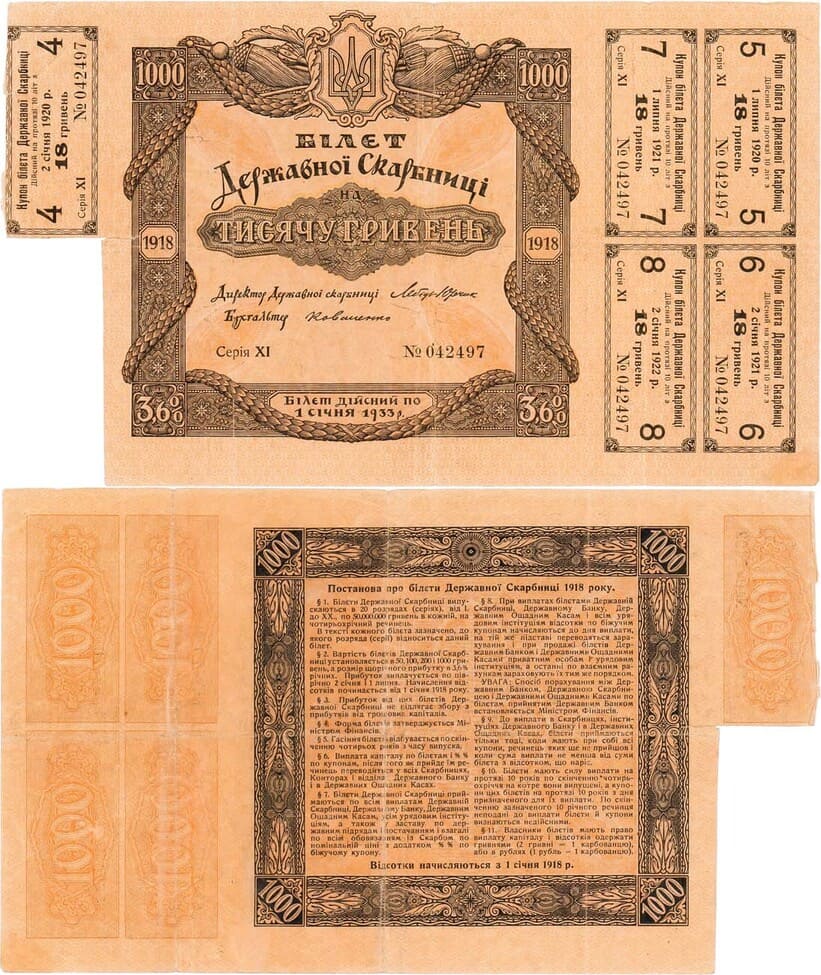 Серия XI, №042497. С 5 купонами. Кардаков 15.1. Истомин 30.12.1a. VF/XF.