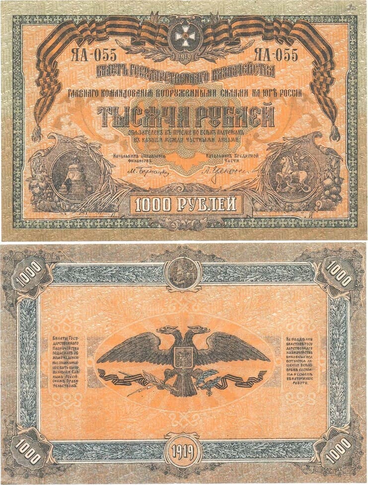 Серия ЯА-055. Водяной знак мозаика. Выпуск Феодосия 1920 год. Рябченко №3030р (3д). XF+.