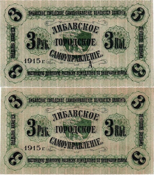 Российская Империя. Либава (Лиепая), Курляндской губернии. Либавское Городское самоуправление. Долговая расписка 3 рубля 1915 года. Литера А. Не выпущена.
