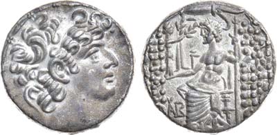 Серебро. 15,36г. Аверс: голова царя в венке вправо. Реверс: изображение Зевса на троне влево, с копьём в левой руке и богиней Никой с лавровой ветвью в правой, в нижней части поля монограмма "АВ"; легенда "ΒΑΣΙΛΕΩΣ ΦΙΛΙΠΠΟΥ ΕΠIΦΑΝΟΥΣ ΦIΛΑΔΕΛΦΟΥ". AU.