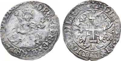 Серебро. 3,98г. Неаполь. Аверс: круговая легенда "+ROBЄRT DЄI GRA IЄRL ЄT SICIL RЄX". Изображение короля на украшенном изображениями львов троне; со скипетром в правой руке и державой - в левой. Реверс: круговая легенда "+hOnOR RЄGIS IuDICIu DILIGIT"; крест, украшенный геральдическими лилиями. AU/UNC.