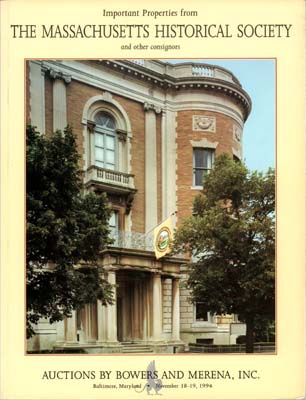 Балтимор, 18-19 ноября 1994 года. 216 стр. 3616 лотов. Редкие монеты из собственности Массачусетского исторического общества Интересен прежде всего продажей самой знаковой монеты русской нумизматики "Константиновского" рубля 1825 года с гуртовой надписью.