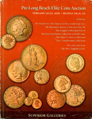 Беверли Хиллз, 20-21 сентября 2005 года. 2498 лотов. Коллекция монет США Эдварда Олстина, в том числе пробных. Очень интересная подборка европейских квадратных клип из коллекции Алекса Турчака. 205 лотов русских монет, многие из которых происходят из коллекции Роберта Хессельгессера.